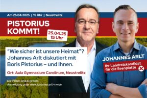 Als direkt gewählter Bundestagsabgeordneter in der Seenplatte und dem südlichen Landkreis Rostock von 2021-2025 habe ich mich für pragmatische Problemlösungen über Parteigrenzen hinweg eingesetzt. Auf eine Zahl bin ich besonders stolz: Knapp 150 Mio. EUR habe ich in Berlin in den letzten drei Jahren für unsere Heimat organisiert. Diese Kontakte nach Berlin sind in den nächsten Jahren wichtig, um unsere Heimat zu vertreten und Gelder zu organisieren, damit wir diese Vision umsetzen können.